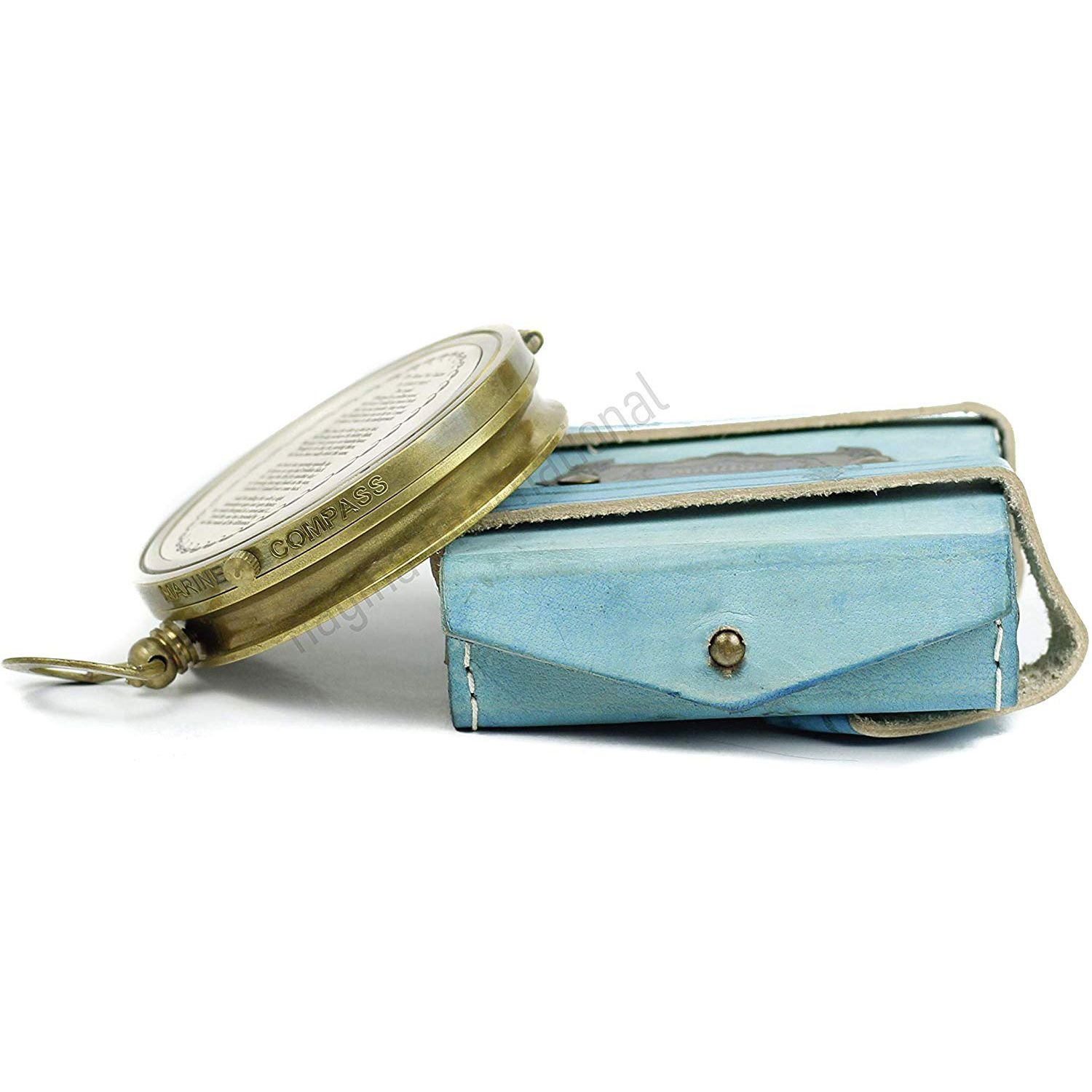 Nagina International Brass Sundial Compass with Chain & Hand Stitched Leather Case | Antique Collectible Beautiful Gift | Sundial Clock (Bronze Brass)