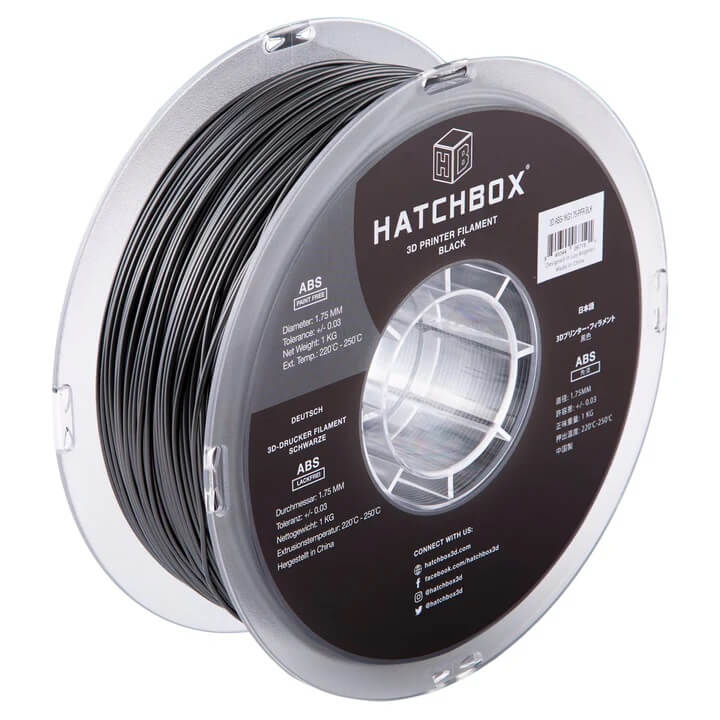 ABS Black 1.75mm 3D Printer Filament, 1 KG Spool HATCHBOX
