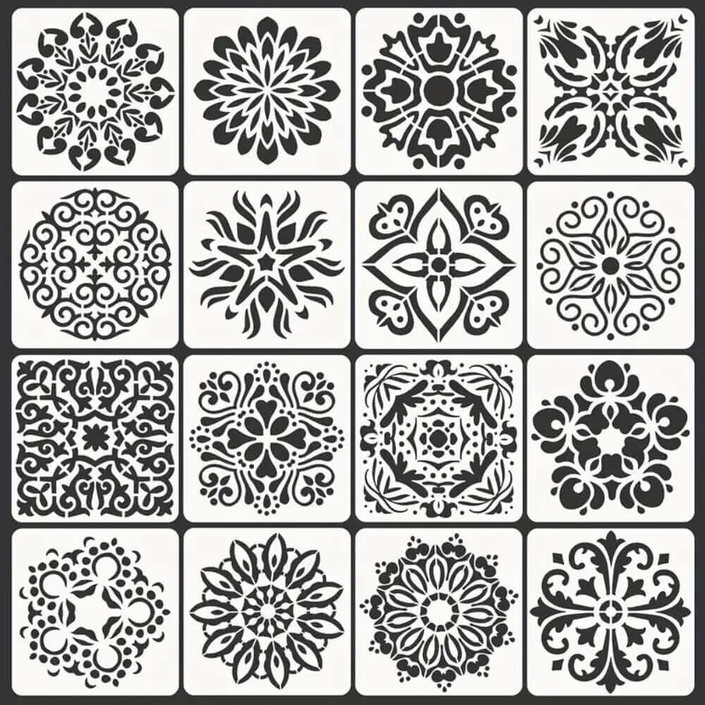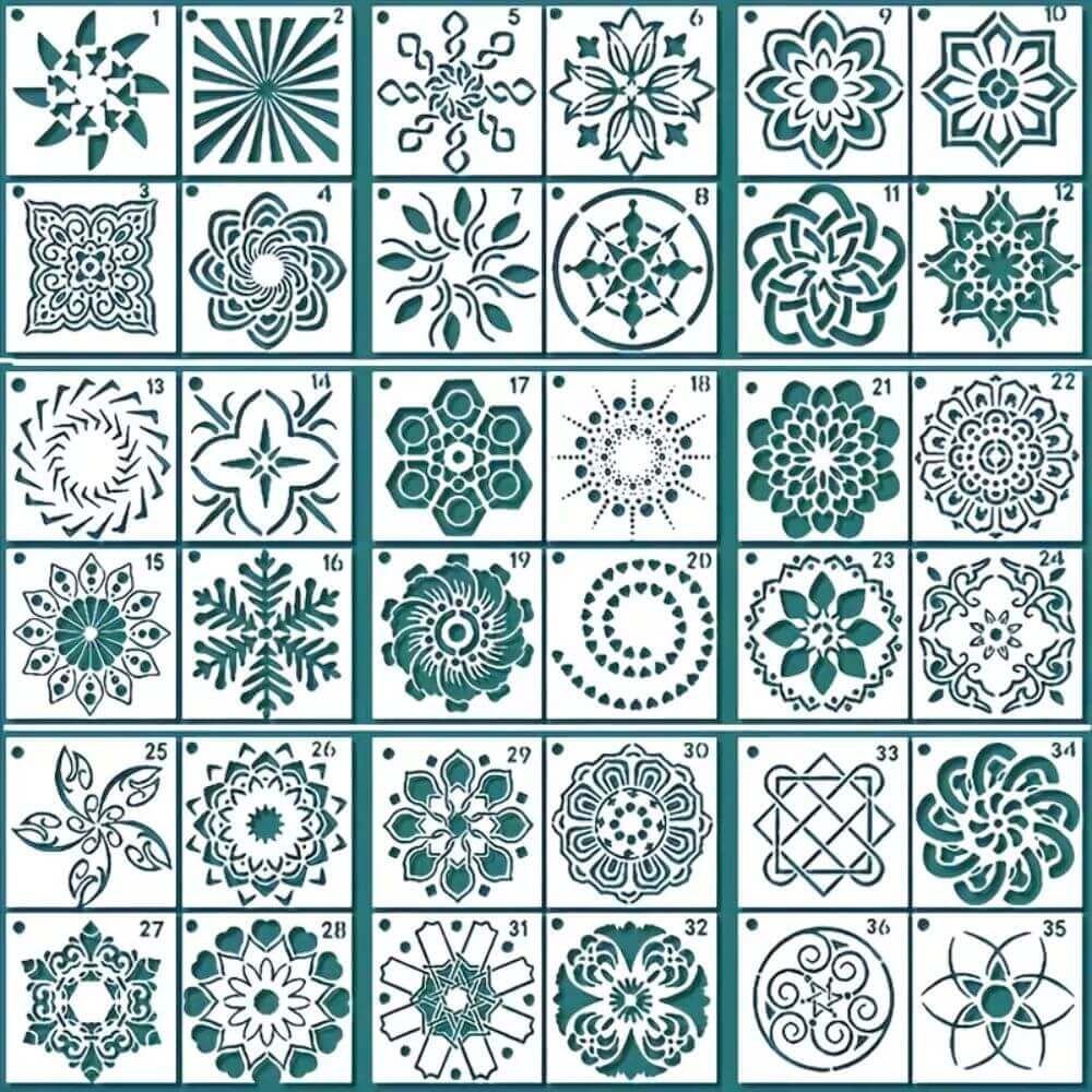 36pc Assorted Mandala Stencils Square 3.54in Reusable