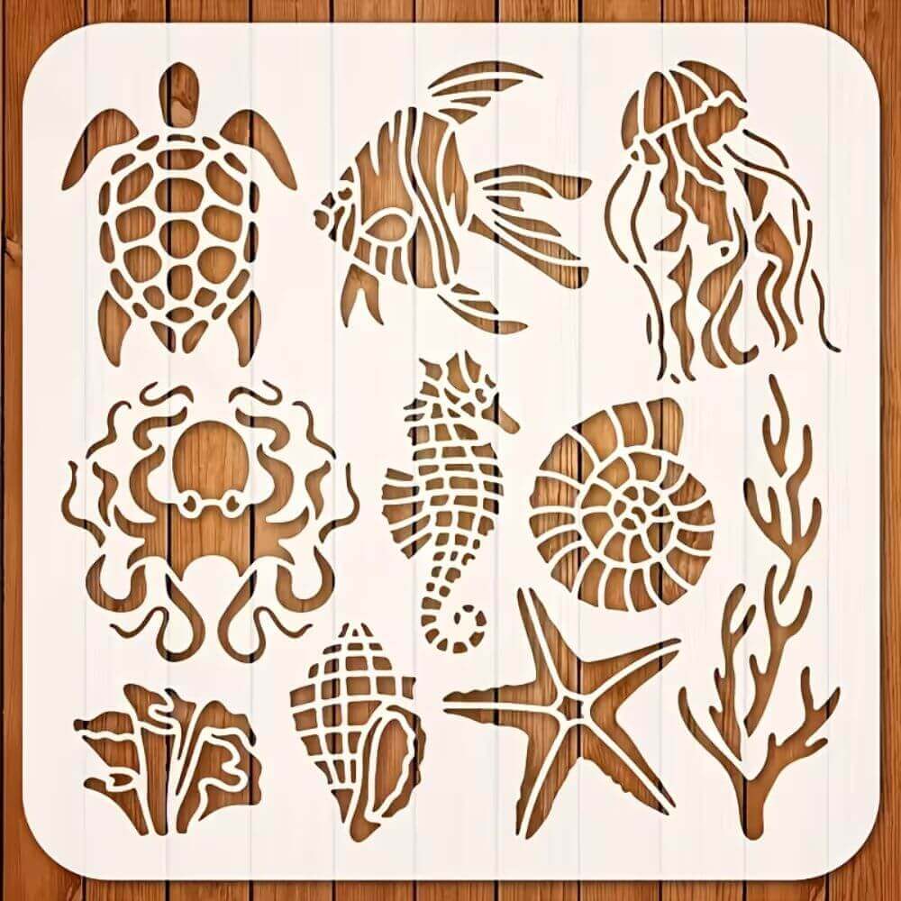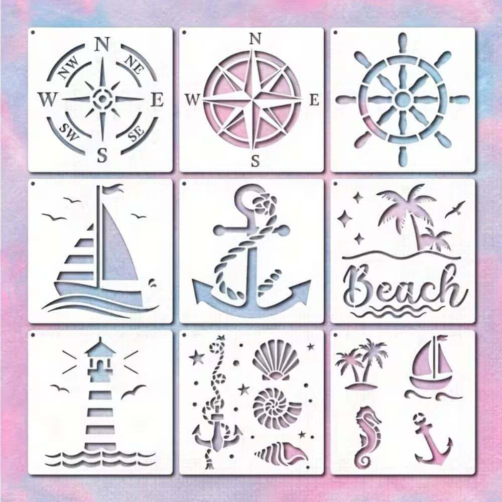 16pc Nautical and Ocean Theme Stencils 4x4in 16 Different Designs
