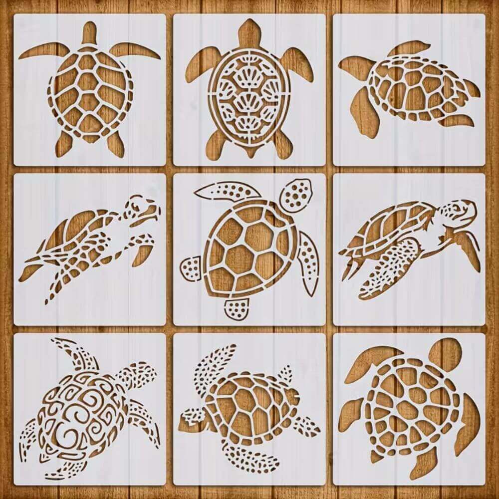 9pc Sea Turtle Stencils 6x6in 9 Different Designs