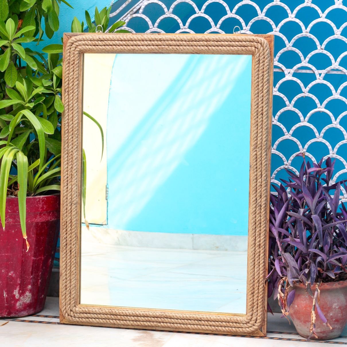 Nagina International Unconventional Boho Chic Style Torched Pine Hand Crafted Mirror with Wall Mounting Nautical Rope | Home Decor Ideas Gifts