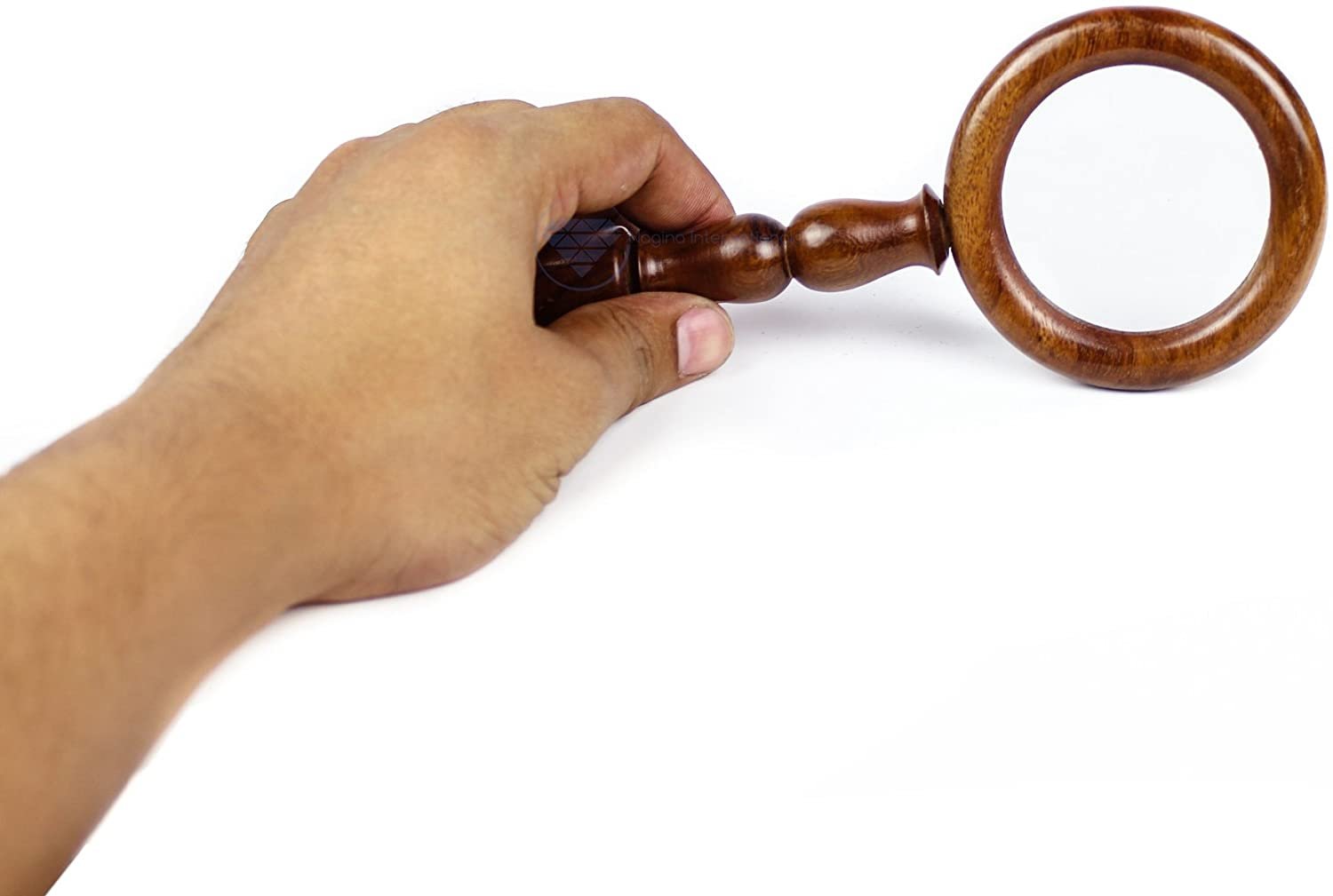 Hand Crafted Wooden Office Decor Magnifying Glass | Wood Premium Exclusive Zooming Lens Nagina International